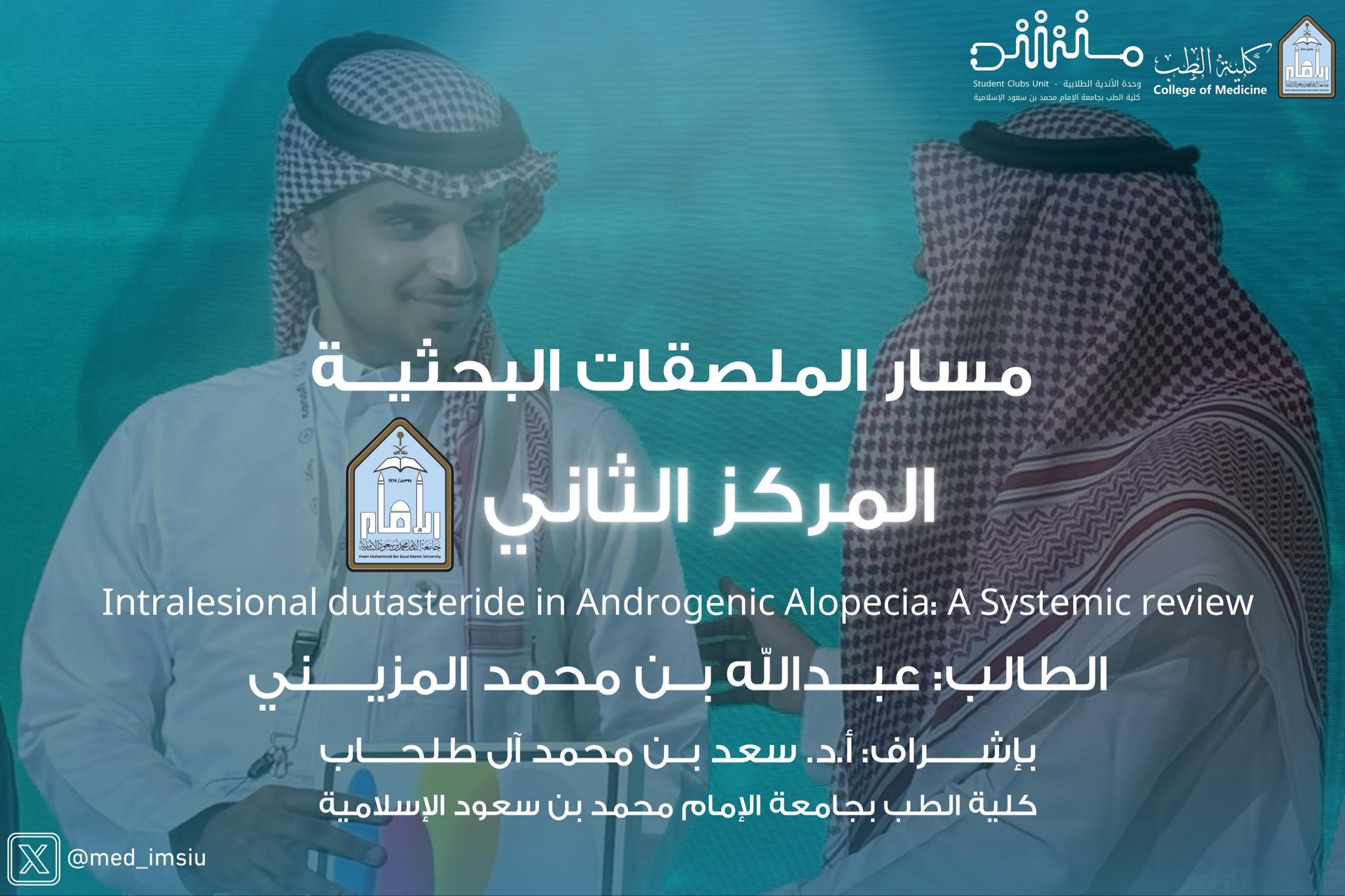 يتقدم عميد ومنسوبو #كلية_الطب_بجامعة_الإمام بخالص التهنئة للطالب عبدالله بن محمد المزيني (طالب السنة الخامسة بالكلية)، بمناسبة حصوله على المركز الثاني -كأفضل ملصق بحثي-، بإشراف أ.د. سعد بن محمد آل طلحاب عضو هيئة التدريس بالكلية، وذلك خلال المؤتمر السادس عشر للجمعية السعودية لأمراض وجراحة الجلد المنعقد بمدينة الرياض خلال الفترة من ٢٥-٢٦ أبريل ٢٠٢٥م.