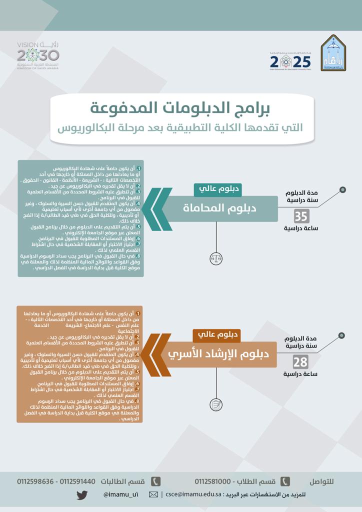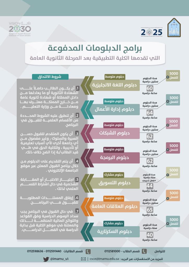 شروط القبول لبرامج الدبلوم المدفوع للكلية التطبيقية للفصل الدراسي الأول للعام الجامعي 1443هـ