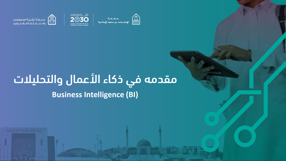 ​​​​​​أقام مكتب إدارة البيانات بعمادة تقنية المعلومات والتعلم الإلكتروني يوم الإثنين 1446/2/28هـ الموافق 2024/9/2​م دورة تدريبة عن بعد بعنوان مقدمة في ذكاء الأعمال والتحليلات لشرح كيفية استخدام أدوات ذكاء الأعمال وهي مجموعات من أدوات تحليل الأعمال وتحليل البيانات ومشاركة الرؤى. تم استخدام برنامج Microsoft Power BI الذي يعد من أفضل البرامج في مجال ذكاء الأعمال.