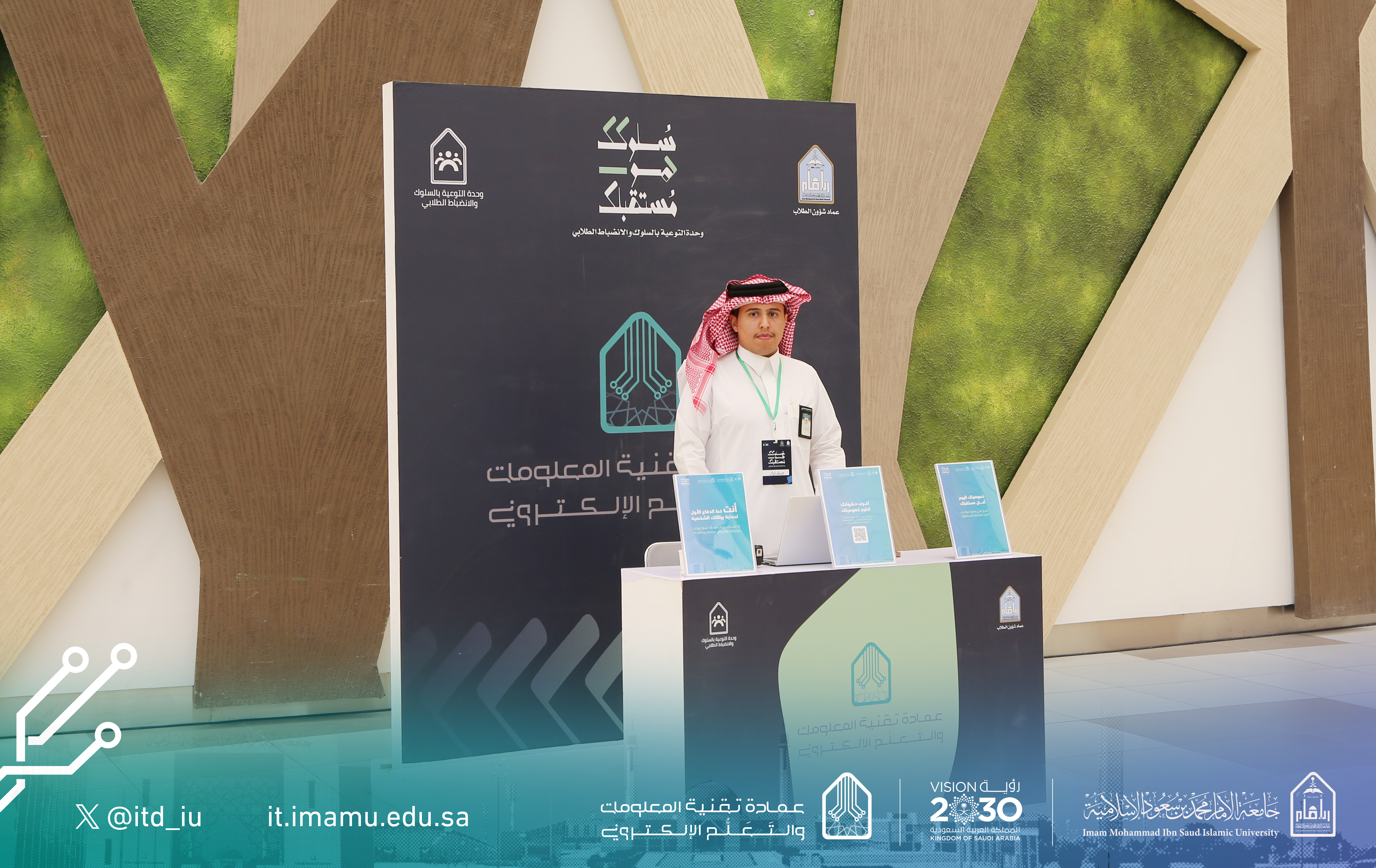 شاركت عمادة تقنية المعلومات والتعلم الإلكتروني في معرض (سلوكك هو مستقبلك) يوم الاثنين 14 / 04 / 2025م، والذي تنظمه عمادة شؤون الطلاب ممثلة بوحدة التوعية بالسلوك والانضباط الطلابي، ويهدف المعرض إلى تعزيز السلوك الإيجابي لدى طلاب وطالبات الجامعة، وتسليط الضوء على أثره في بناء شخصية متكاملة على المستوى الشخصي والأكاديمي والمهني؛ ويأتي تنظيمه ضمن جهود الجامعة في تنمية وعي الطلبة، وتوفير بيئة تعليمية تتكامل فيها الجوانب العلمية والسلوكية، وتأتي مشاركة العمادة بجناحها لزيادة وعي الطلاب والطالبات بأهمية الحفاظ على خصوصية البيانات الشخصية وذلك بقراءة سياسات الخصوصية وعدم مشاركتها إلا مع الجهات الموثوقة والرسمية، ومعرفة الحقوق النظامية لتجنب المخاطر المستقبلية في العالم الرقمي والتقني.